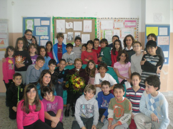 Οι μαθητές και οι μαθήτριες είχαν προετοιμαστεί διαβάζοντας πολλά από τα βιβλία της και δημιούργησαν πολλές εργασίες εμπνευσμένες από αυτά (κατασκευές, ποιήματα, ζωγραφιές, ακροστιχίδες, αινίγματα, συνθήματα, κ.ά.). Κατά την επίσκεψή της στο σχολείο τα παιδιά συζήτησαν μαζί της και δραματοποίησαν ένα απόσπασμα από το βιβλίο της τα "Τέρατα του λόφου". Στη συνέχεια η συγγραφέας έγραψε αφιερώσεις στα βιβλία των μαθητών. Στο τέλος τα παιδιά ξενάγησαν τη συγγραφέα, καθώς και το σχολικό σύμβουλο που μας επισκέφτηκε εκείνη τη μέρα, στις δημιουργίες τους που κοσμούσαν όλο το σχολείο.